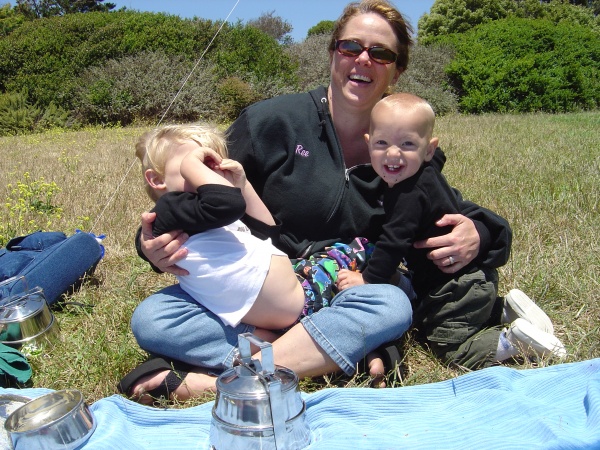 Laureen and her sons. Either the sun was in Rowan's eyes, or he's not much for pictures.