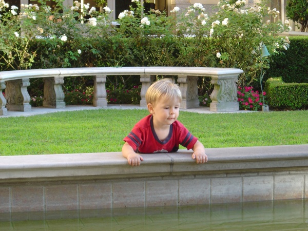 "Coins." (Donovan examines the water feature in the courtyard outside Daddy's office building.)