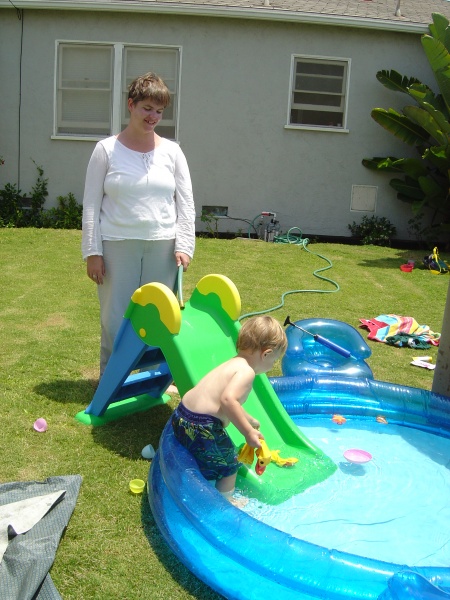 Comments: Shana gave Donovan his slightly belated birthday present (only because we hadn't seen her in ages), and these duck hand puppet/washcloths were part of it. They're fun water toys, apparently.
