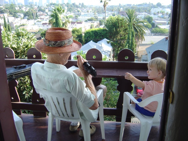Donovan and Harvey take in the view, and play catch with the binoculars.