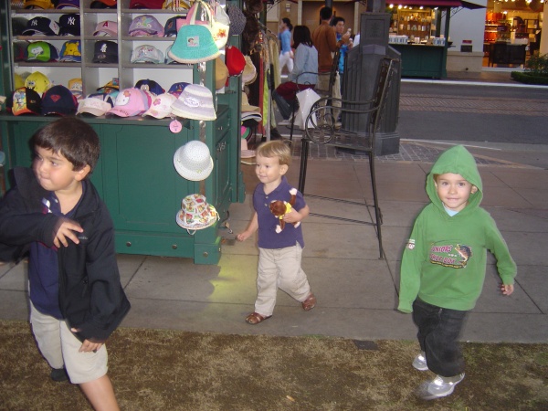 Donovan runs around at the Grove with some other kids, carrying his new Curious George plushie.