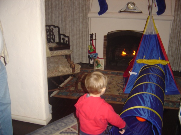 A new toy for Donovan at Oma's house: a tent and tube for him to crawl through and play in.