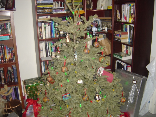 A mostly-full shot of our Christmas tree. Decorated by Monica.