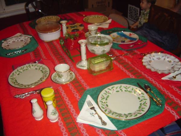 The dining room table, all set out by Diana.