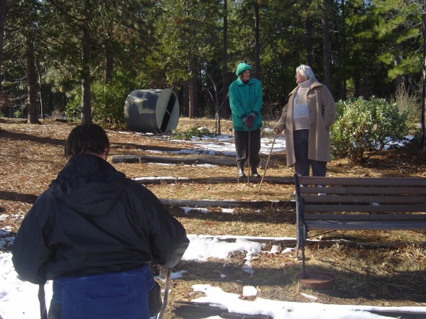 Comments: There's a small terraced amphitheater-like area just above the platform, where the guests sat. By this time, Donovan had been let down from the Ergo, so that he and Matt could play in the snow while the others went inside to pack.