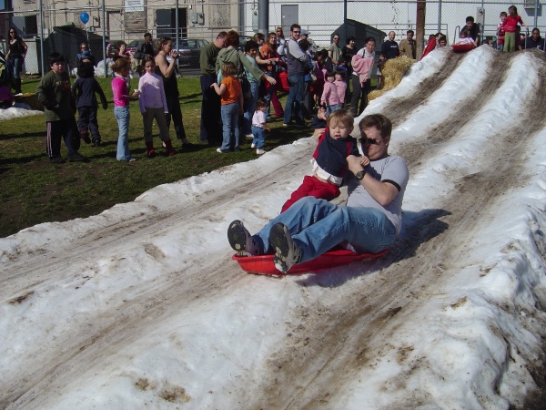 Comments: This was taken as the toboggan decided to jump over to the next track. Donovan was nearly hurled off it, but Daddy's quick thinking and reasonable upper-body strength saved the day.
