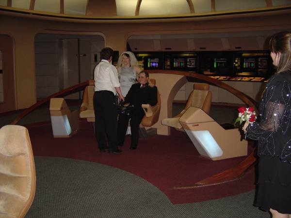 Brad finally gets to sit in the chair. We find out that Captain Picard must be really tall.