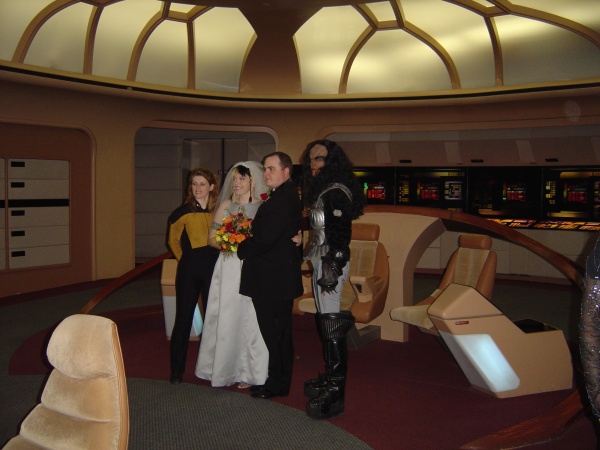 The happy couple is taken into custody by a joint Federation-Klingon force.