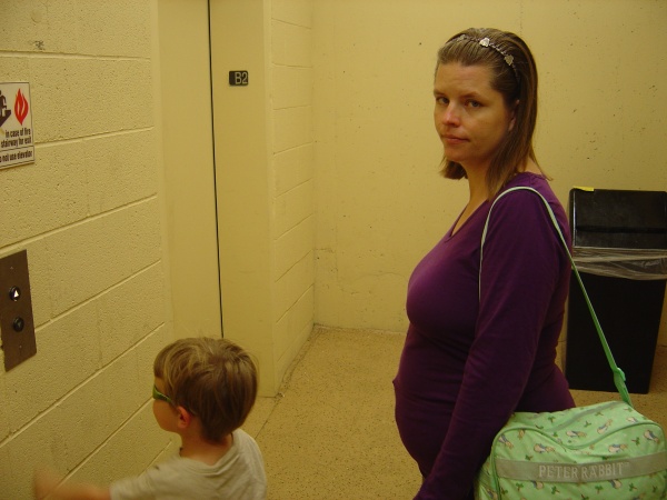 Mommy looks sooooo thrilled to be showing off the baby at Daddy's work. (She really is, but she's also tired.)