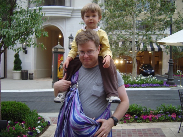 Back at the Americana (we love that place), Daddy holds both his boys arms-free.