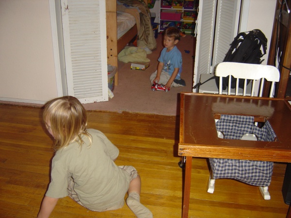 Donovan and Kezian explore the concept of cooperative play from a safe distance.