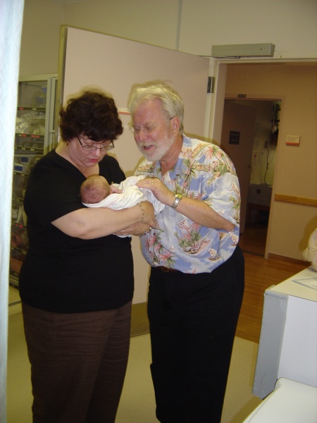 Grandma and Grandpa Waggoner welcome their new (and first) grandson.