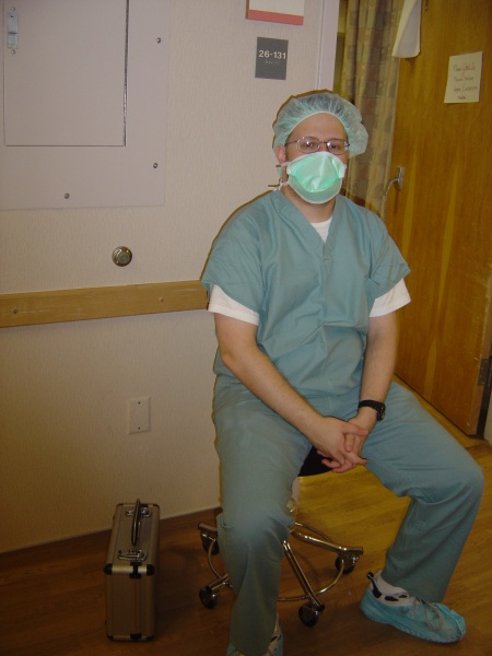 The next morning, Matt waits in scrubs while they prep Monica for a C-section.