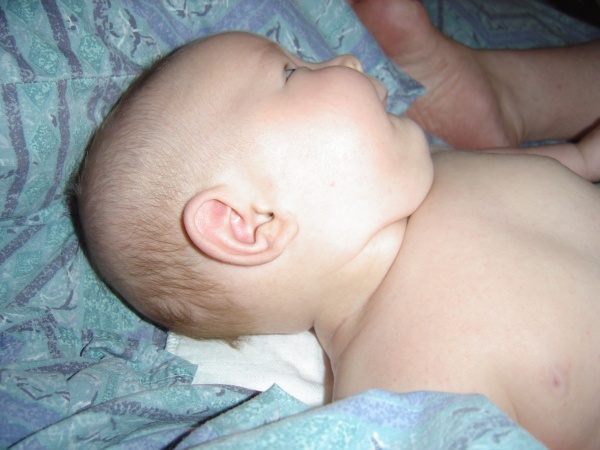 Donovan considers eating mommy's foot.