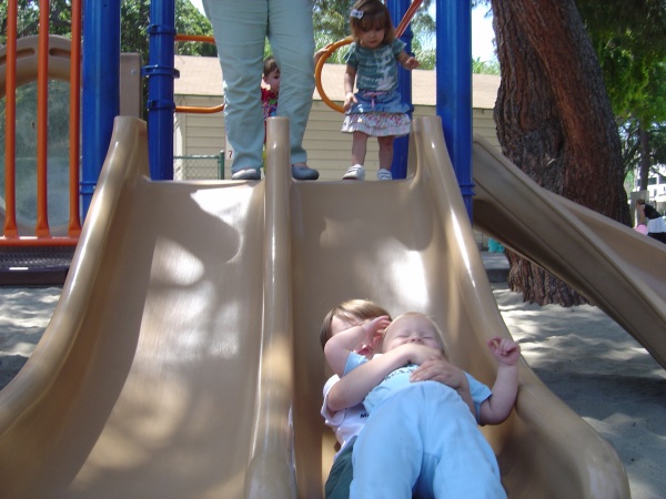 Remaining upright is a bit of a challenge when you've got someone who adds 50% to your mass on your lap.