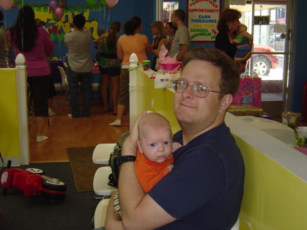 Comments: Matt holds a very worried-looking Andrew. Matt's probably not doing anything wrong; Andrew pretty frequently looks like he may have left the iron on.