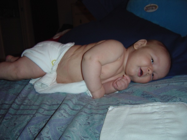 Not exactly tummy time, because he's on his side, which he sometimes likes and sometimes hates.