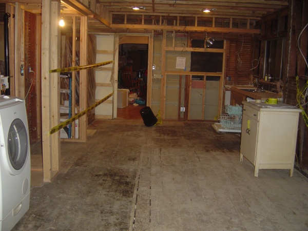 Reverse angle, showing again the bare walls and new joists.
