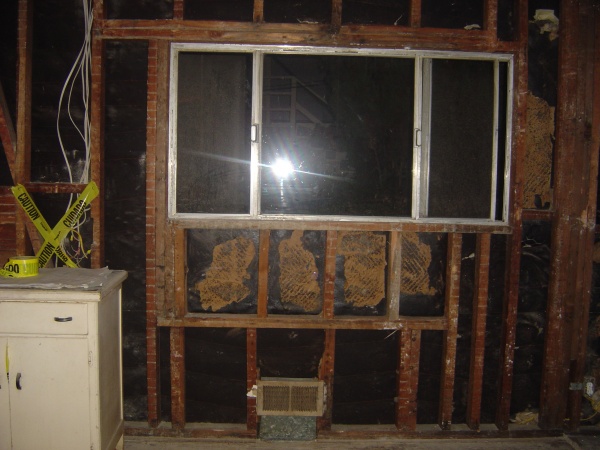 Detail of one exterior wall, around the window. These aluminum windows have all been replaced (in this part of the house... still two of them in the living room).