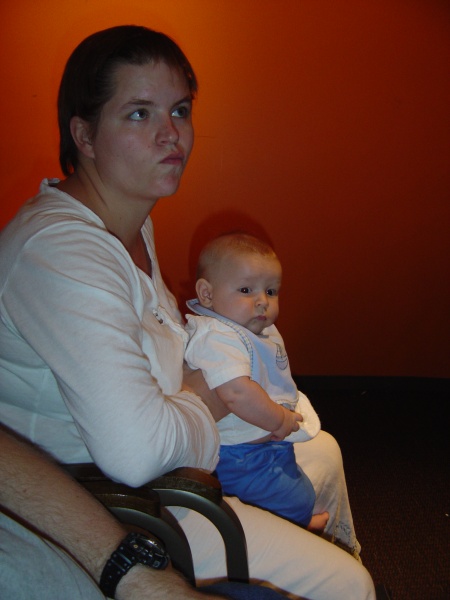 Monica's so hungry, she's chewing on the inside of her cheek. Better that than devouring the baby, we suppose. Mmm... baby. The
