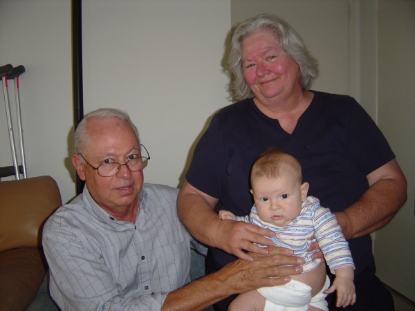 A rare picture with three people *all* looking toward the photographer at once, and one of them is a three-month-old.