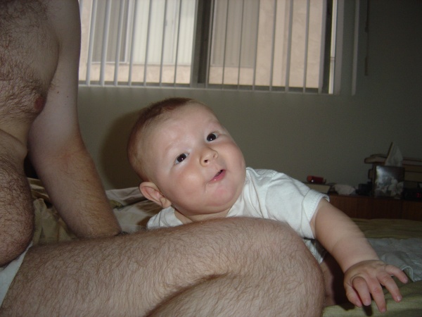 Donovan tries to sit up, but he still hasn't got the lower back strength to hold himself up on his own.