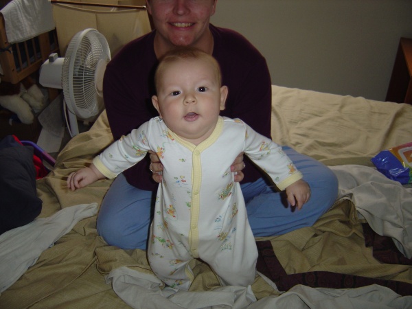 Mysterious, unknown woman holds Donovan up for the camera.
