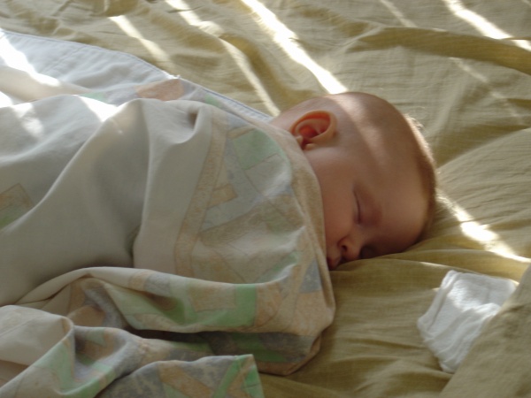 Comments: Donovan taking his midday nap. He's gotten into a rhythm where he wakes up around 7am, has an hour or two nap around 9-9:30, another hour nap around 1pm, and a two hour nap around 4pm, before going to bed for the night around 8:30-9pm. Actually, even when he goes to bed by 9, he usually wakes up for an hour or so around 11 or midnight, and then finally has his long sleep until 7am (punctuated by feedings/changings every couple of hours, but he stays groggy for those).