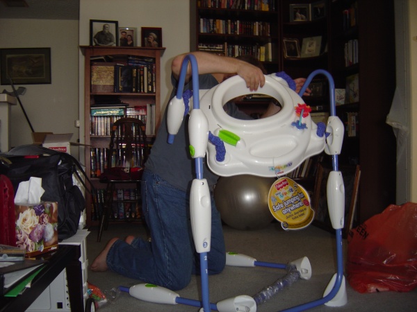 Unhooking one of the spring bits where it got stuck against the bouncy seat.