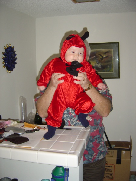 Lil Devil... being propped up by the invisible grandpa. Note the ominous Anakin-style shadow behind him...