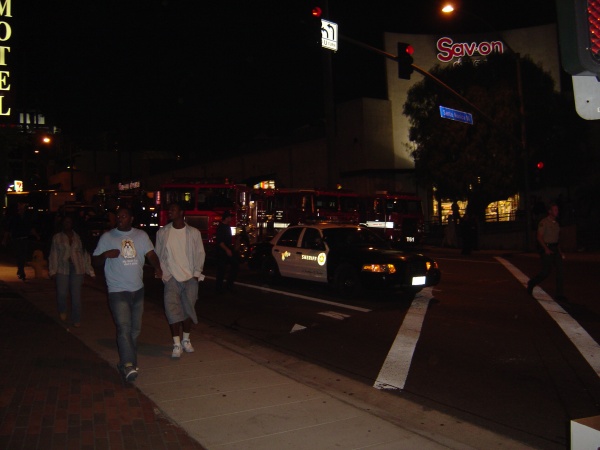 Comments: La Cienega Bl. southbound at Santa Monica Bl. Lots of emergency vehicles. Unfortunately the most interesting emergency vehicles -- a couple of police horses -- are behind the random pedestrians. Taken: Sunday, October 31st, 2004 at 18:02:34 Pacific