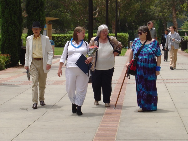 Harvey, Monica, Bobbie, and Chelsea head for the car.