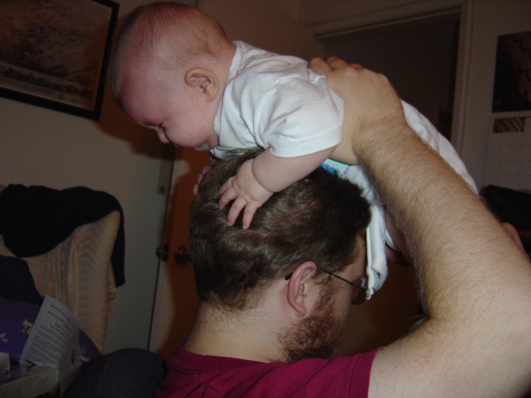 This was much cuter a second earlier, before Donovan started yanking on daddy's hair. Or maybe this was the cute part...