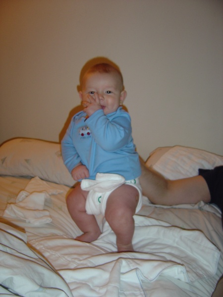 Donovan likes to suck his thumb, but he hasn't quite got down the whole "curled-fist" thing, so he tends to cover half his face with his fingers.