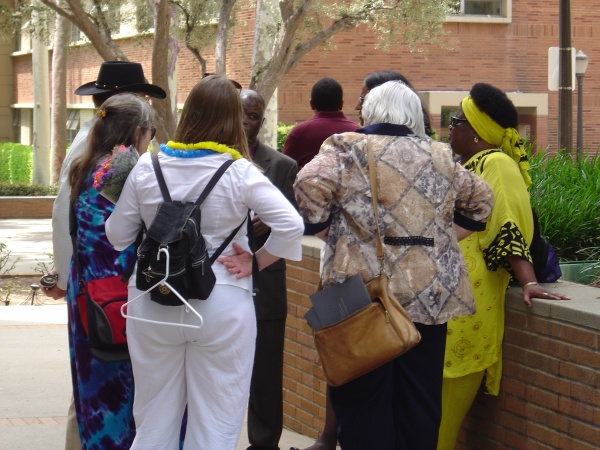 The group gets hijacked by Nigerians on the way to the car. Pay no attention to the coat hanger.