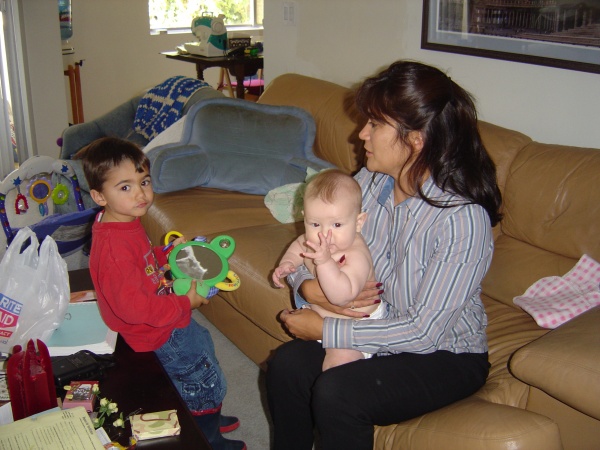 Lisa Fichera and her son Jason visit with Donovan.