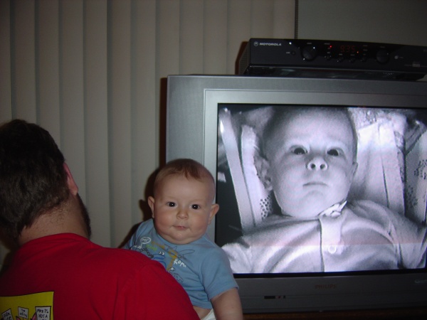 Comments: Left to right: Matt, Donovan, Matt. In this video, Matt was the same age to the day that Donovan is in this picture. They do look quite a bit alike (though Donovan can probably never hope to have nostrils quite that big).
