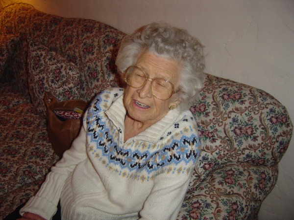Great-grandma Enid blinks.